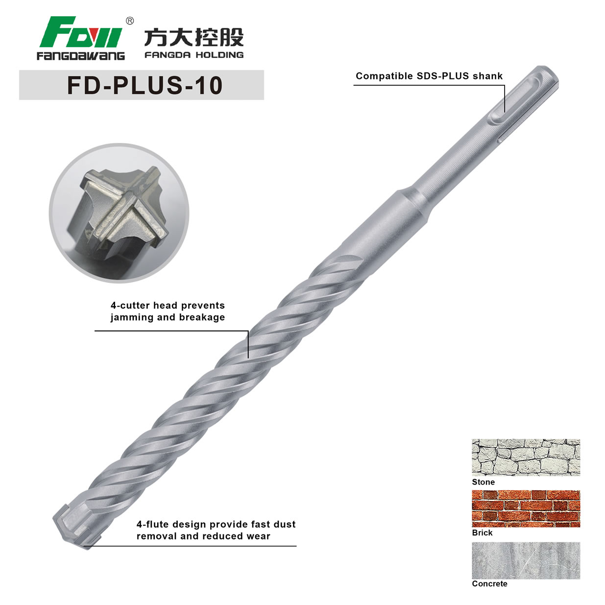 FD-MAX-2 HAMMER DRILL BIT, U flute, Dual cutter